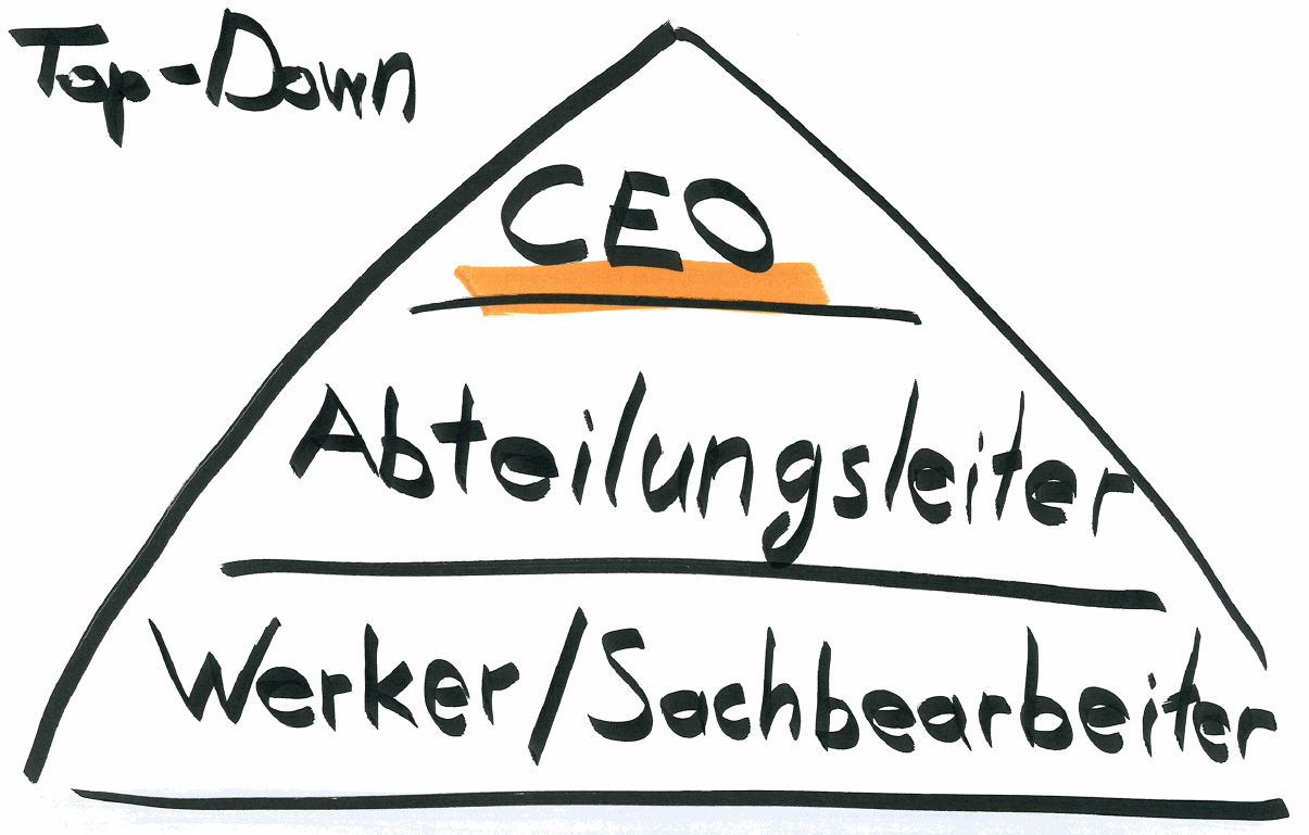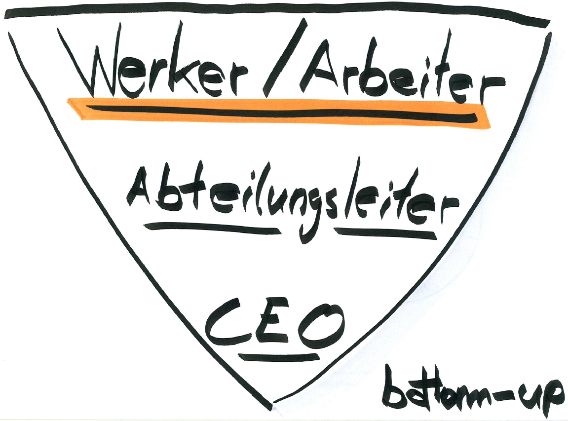 Der Blickwinkel der Abteilungsleiter und der Werker bzw. Sachbearbeiter ist stets nach Oben gerichtet: Was wollen die da oben von mir / uns?
